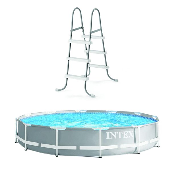 Intex 12 Ft X 30 In Steel Frame Pool W Intex Pool Ladder For 42 Inch Wall Pools Walmart Com